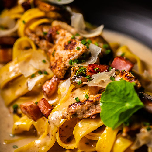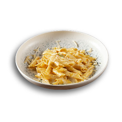Όλα τα Φρέσκα Ζυμαρικά* είναι παραγωγής μας, ζυμώνονται με φρέσκο παστεριωμένο αυγό και βράζονται αποκλειστικά, την στιγμή της παραγγελίας σας.